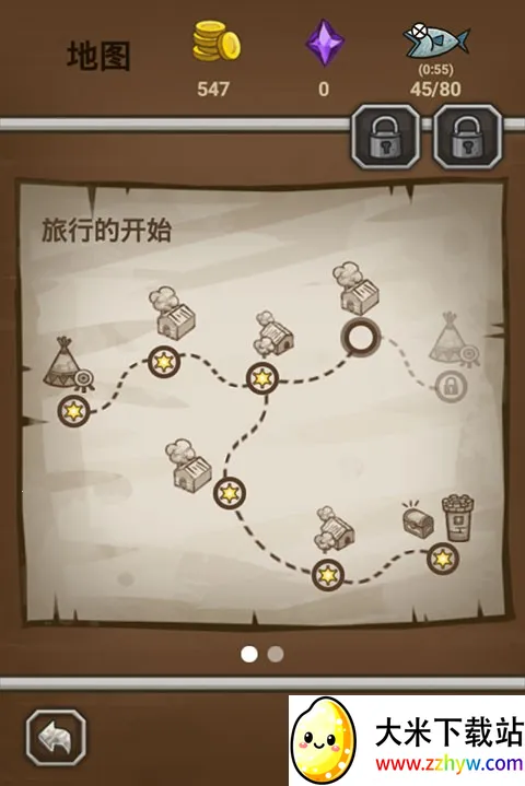 2、在猫射手游戏中,带有宝箱图标的关卡代表宝藏关卡,通关后必得一件随机装备。
