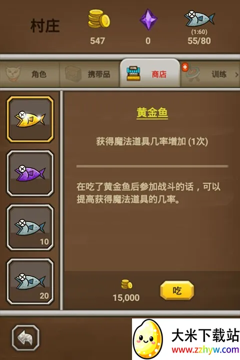 4、消耗15000金币来购买一次性的黄金鱼,以提升下一次获取高级装备的概率。