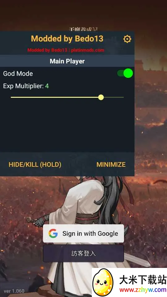 4. 内置菜单版加入便捷功能选项,助玩家轻松体验游戏内容,比如点击右上角设置可切换语言为中文等。