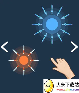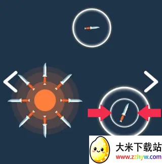 总体来说,游戏的难度不大,与一般的io类游戏玩法相类似,但在规则上却有些许差异,主要还是以操控着飞刀来击杀对手为主旨,但唯一不同的是防御状态下你会处于无敌,从而让弱小的敌人也具备一定的反击能力。