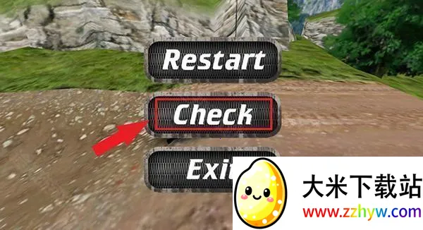 4、如果玩家在中途不幸车毁人亡,也可以通过点击中间的“check”按钮进行时光回溯,回到存档点继续游戏。