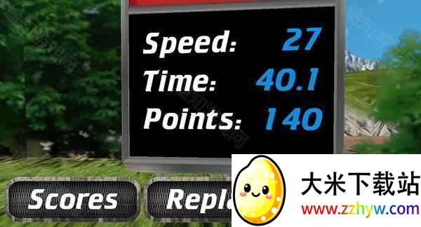 5、顺利通过终点线就可以通过关卡啦,可以查看自己的速度和用时,如果不满意的话可以点击“replay”重新挑战,满意就可以点击“next”进入下一关啦。