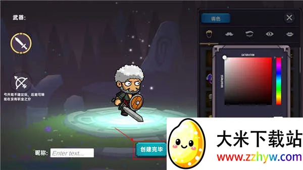 2、点击“调色”功能,可对头发、服装、武器等部位进行精细化色彩调整,打造专属视觉风格。
