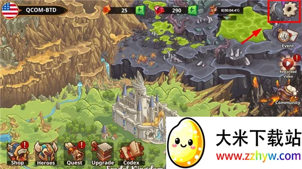 1、下载并安装本站提供的战国争霸2最新版,打开进入游戏点击右上角设置按钮