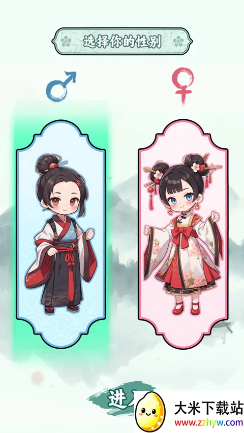 1、打开家族重开最新版,进入后选择性别;