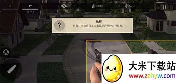 1、下载完成后进入游戏,轻触并拖放屏幕上突出显示的部分进行瞄准;